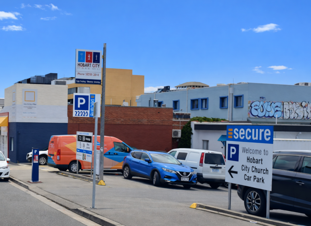 Paid parking is available a couple of doors down at 8 Goulburn Street at the Hobart City Church Car Park.